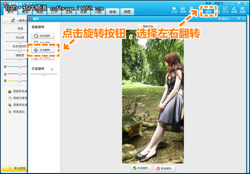 3、点击“旋转”菜单,选择“左右翻转”,点击下方“完成旋转”。
