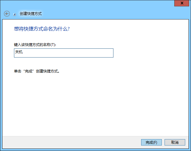 3、点下一步、写上你喜欢的名称、写什么都行,只要不和桌面上其他程序重复,建议写“关机”