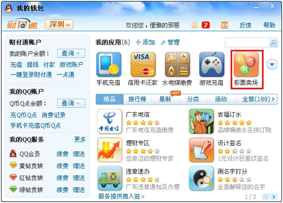 您可以登录财付通生活好帮手-彩票卖场-财付通专区进入,或从小钱包入口登录。