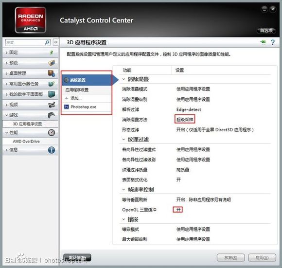 在显卡驱动控制面版里把photoshop添加到应用程序设置,开启openGL 三重缓存,N卡直接选择选择高性能显卡(由于默认的是集成显卡。导致3D功能不可使用,所以闪烁)