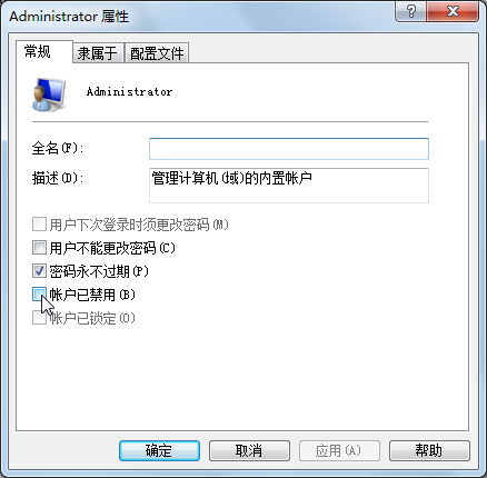 注意:在重置完系统后,Administrator并没有被激活,而这个管理员才是正宗的,很多时候我们需要使用它,因此必须激活之。