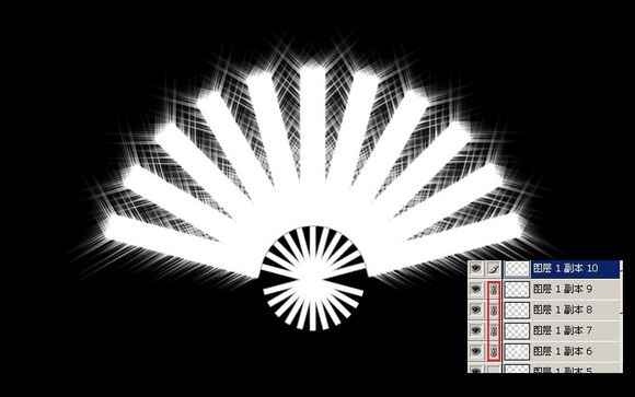 扇子如果不在画布中间,可以把右边图层上的小链子都连接上,拖到中间位置OK
