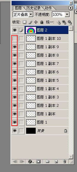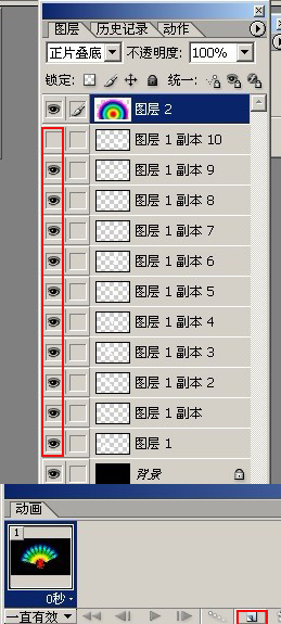 把右侧图层的所有眼睛图标都点出来,准备开始新建动画