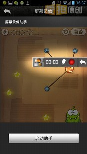 ③.启动助手后点击“录屏键”就开始录制你的手机屏幕了,录好了点保存按钮,然后点“返回拍大师”查看录制的视频。