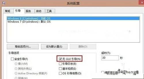 1. 系统配置窗口中,首选切换到“引导”菜单,然后在“无GUI引导”前打个勾,基本上这步就又能节省两秒开机时间了,如下图
