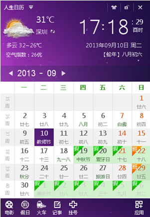 人生日历是一款清新,易用的生活万年历。9月13日发布新版3.0版本,新版对界面和交互设计进行了大幅优化,并且在功能特色方面也加强了优化。其提供天气预报,公农历对应,假日节气查询,放假安排查询,订火车票等生活化的功能,可以帮助用户便捷的查询各类生活信息。