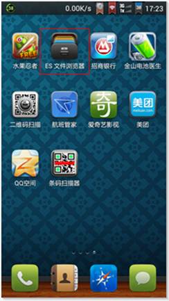 步骤二:安装软件,在安卓手机上下载应用程序“ES文件浏览器”。