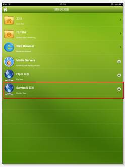 步骤三:打开应用软件,选择“媒体浏览器》Samba服务器”。
