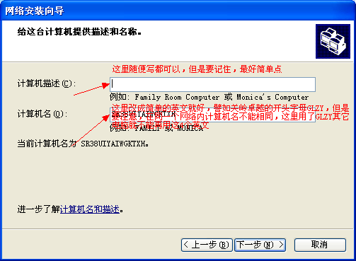 填好上面的‘计算机描述’和‘计算机名’后点两次‘下一步’见图(3).