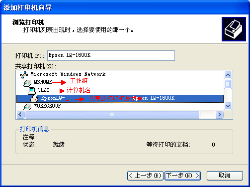 选好要共享的打印机点‘下一步’弹出是否安装打印机对话框,点‘是’、‘下一步’、‘完成’测试下能打印文件就可以了。