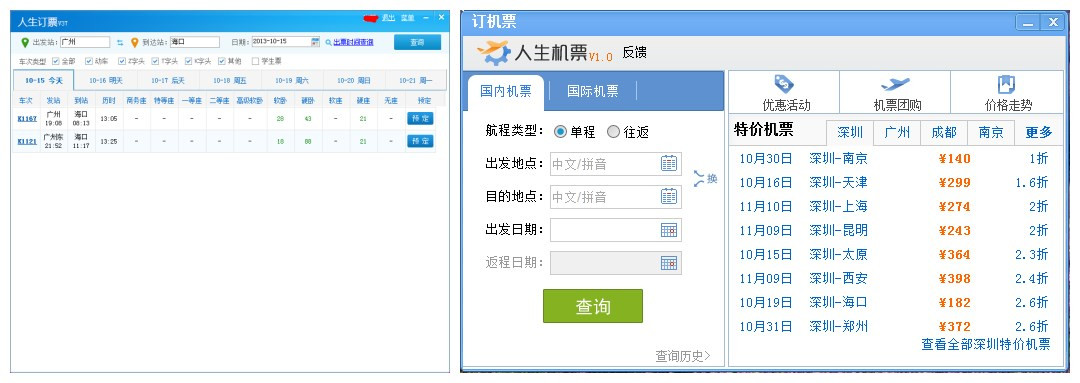 生活方面,人生日历真的能够提供很大的便利。每逢节假日,抢火车票就成了生活中的头等大事,有时候在电脑面前坐一天可能都刷不到一张票。人生日历订火车票的功能有一个很大的特点,你提交订单之后开始刷票,只要有票直接就给你预定好了,不需要再去输入订票人信息、座次以及验证码。一步到位,刷票成功之后,马上去付款就可以。人生机票也是一个不错的选择,各种特价机票、优惠活动随时给你呈现,如果你有一个说走就走的旅行,点击桌面右上角的人生日历,就可以解决往返机票问题。