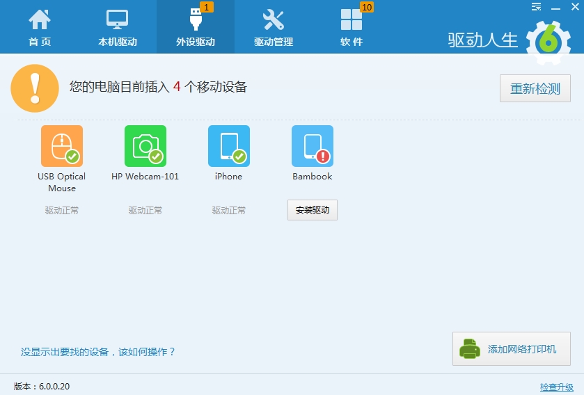 新增网络打印机选项,自动搜索局域网内的打印机,可自动识别打印机驱动直接安装网络打印机驱动,省去以往的繁琐步骤。