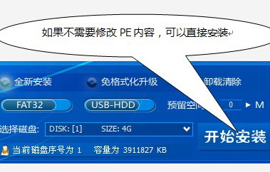 4、开始安装:软件自带老版本的PE定制数据包,可以直接点击“开始安装”,如果需要修改PE,可以到PE定制里面修改或重新制作。