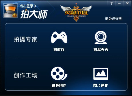 安装英雄联盟视频录制软件,拍大师英雄联盟录像工具专版,安装完成打开软件如图所示: