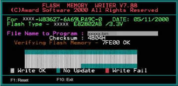 当出现下面的画面时就到了更新BIOS成功的最后一步了。AWDFLASH程序将在屏幕的最底部提示你,按下F1键将重启计算机(热启动),按下F10键将结束此程序。