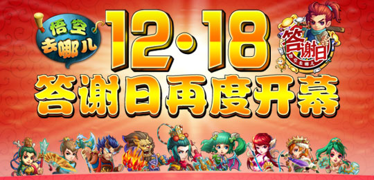 以西游为题材的手机卡牌网游《悟空去哪儿》,目前正在进行不删档内测,并将在本月进行版本大更新。为了感谢各位玩家对我们的大力支持,我们将每月第三个周三设立为答谢日,这一天是玩家们的节日。在上个月的答谢日我们为玩家们准备了丰厚的礼物、精彩的活动,以及重磅消息,受到玩家们一致好评。12月18日,答谢日将再度开幕,让我们一起期待这一天的到来吧。