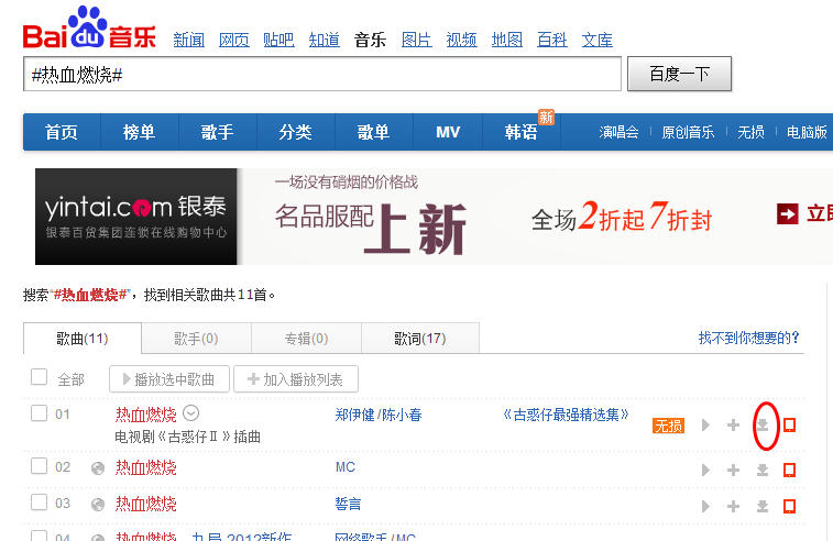 1.登录状态下百度音乐搜索#热血燃烧# 。