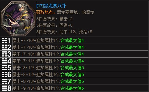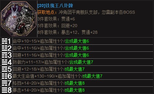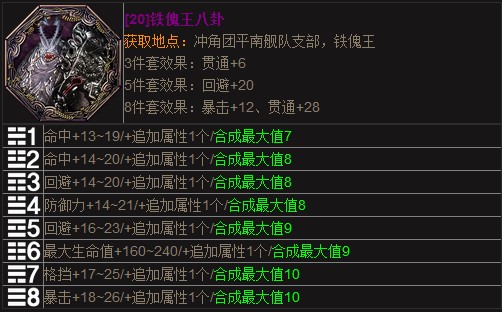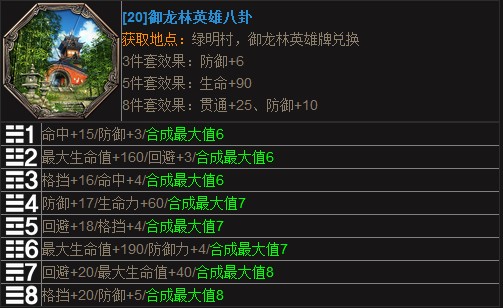 游戏中全部八卦的合成方法以及套件累计效果说明: