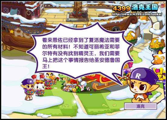 这边,可丽希亚和小洛克们一起去探望受伤的圣诞老人,然后兵分两路,一路去送礼物,一路去寻找草系精灵王。