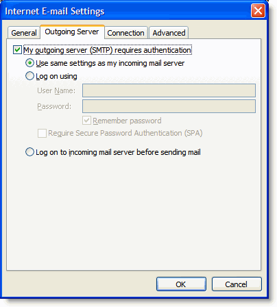 要求使用安全密码身份验证 (SPA) 登录:请勿选中此选项。