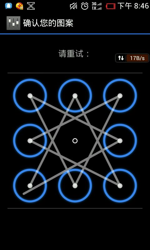 看到一个朋友手机的解锁图案是五角星,感觉很酷,学了半天没学会,后来通过自己慢慢摸索终找到方法了,下面把这个五角星解锁图案的画法和大家一起分享一下。