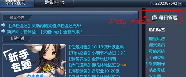 2、是不是QQ登录帮帮失败? 点击”每日答题“,如果提示重新登录QQ,请登录当前游戏QQ,再次领取礼包试试。