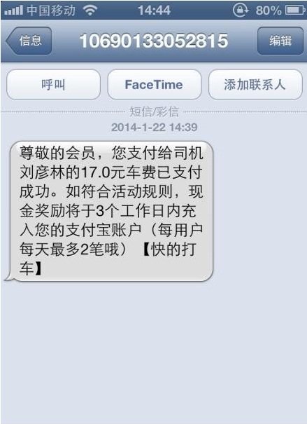 总的来说这时腾讯和支付宝两个互联网巨头之间竞争所引起的一场手机支付大战!目前使用微信的滴滴打车和支付宝的快的打车都是可以享受到10元的免费,也就是说你如果是做短程的的士的话,说不定的士还要倒找你钱,只限每天2次!当然这要看你的本事了,不仅仅是乘客有这样的好事,司机更是每天都可以获得一些使用的奖励等!不过小编觉得这种好事不会太久的,大家就赶紧行动起来吧!