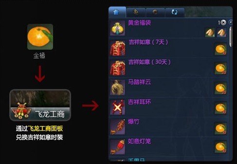 剑灵金橘有什么用?剑灵金橘可以在飞龙工商面板兑换春节时装和黄金福袋。
