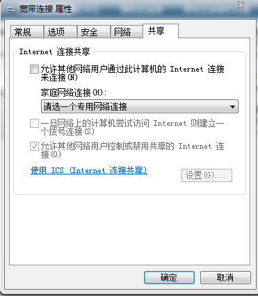 (4)其实在虚拟网卡之后,软件会将能够上网的连接共享给虚拟网卡。可以看到这里的宽带连接是共享的,我们打开属性对话框,可以看到它共享给虚拟无线网卡。