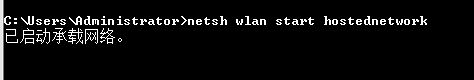 接下来,在命令提示符中运行:netsh wlan start hostednetwork,从而开启无线网络。