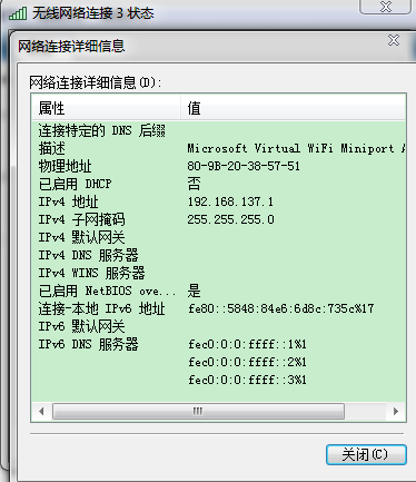 (1)可以看到这里网关是设置成无线路由的笔记本