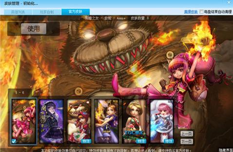 或者点击皮肤管理,选择英雄,然后会切换到官方皮肤的界面,选择自己喜欢的一个,点击试用