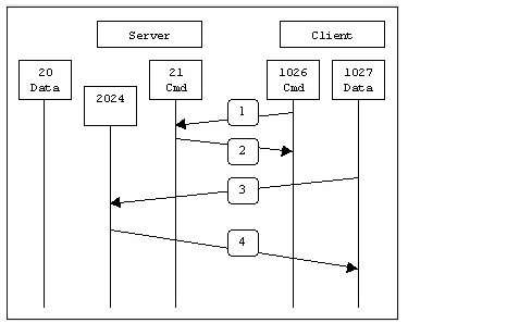 FTP服务器的20端口到大于1023的端口(服务器端初始化数据连接到客户端的数据端口 S->C)