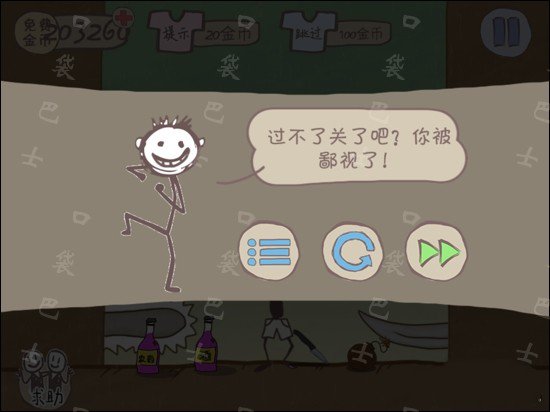 从下图中我们不难看到各种死法的道具林立,相信大家也已经试过各种方法,唯一的结果就是死亡。所以这一关是无解的。正确通关的攻略方法就是,花费100金币跳过。(小编也被难了好久,才发现这居然就是通关方法...)
