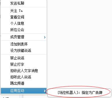 使用应用菜单将选中的用户指定为广告牌,才能勾选后面的选框,开启本功能。作为广告牌的人,会被锁定在3麦,直到离开所在频道。