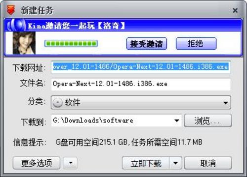 第三步:右击该资源,在出现的右键菜单中选择“使用快车下载”,打开“新建任务”对话框,在其中设置好文件名称、保存路径等项,单击“立即下载”按钮,即可在不输入验证码的前提下,完成软件下载(如图4)。