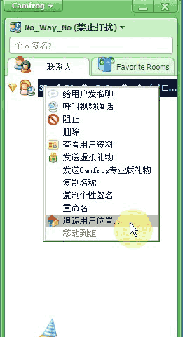 第一步:在好友名字上点鼠标“右键”,然后点选“追踪用户位置”,如下图所示:
