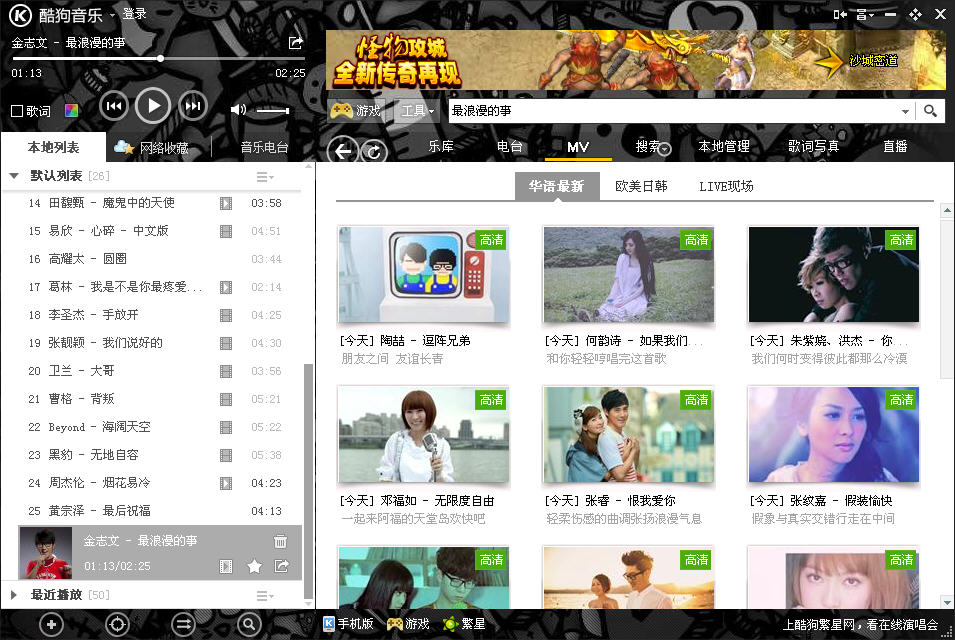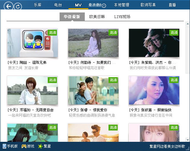 可以在线观看歌曲的MV。