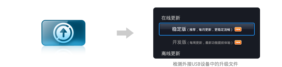 打开超级电视主界面-->进入系统升级程序-->选择USB升级;