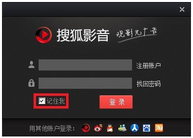 a. 在搜狐影音右上角点击登录链接,输入正确用户名/密码后,勾选“记住我”。