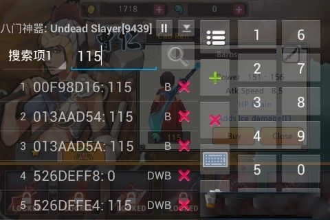先打到第三关出来个曹仁有没有。。然后点一下在点一下武器的。。选择60玉的打开八门神器搜索60再点自动匹配会出现很多数据再点一个250的武器然后再点八门输入250点放大镜还会有很多数据。。在换到游戏点最贵的武器再点八门再点放大镜就什没几个了然后修改第一个数值为
