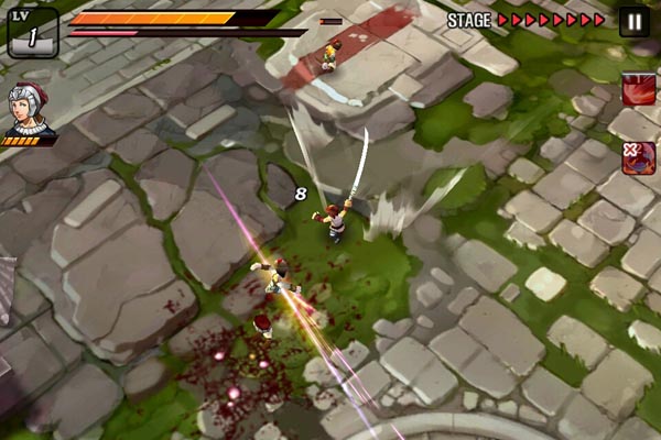 ①:连滚。按2次屏幕(连滚近身小兵会砍一刀,范围很大。但容易被格挡,建议少用)