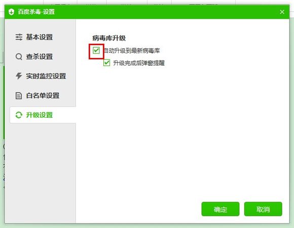 但是,很多安装了百度杀毒用户的亲们在打游戏的时候是不是觉得网速有点慢?那是杀毒酱在自动更新病毒库,这时候我们只需要在”升级设置“中把“自动升级到病毒库”前面的勾取消就可以啦~亲们就能放心的撸了呢~