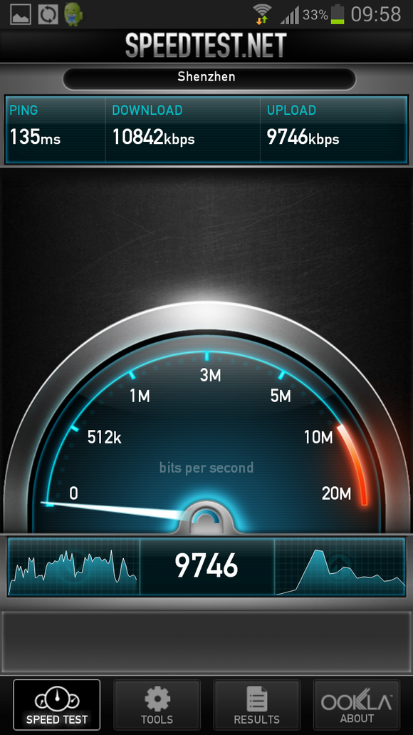 移动4g粉墨登场,无论下载还是上传都相当给力,实测环境为深圳大梅沙室内。