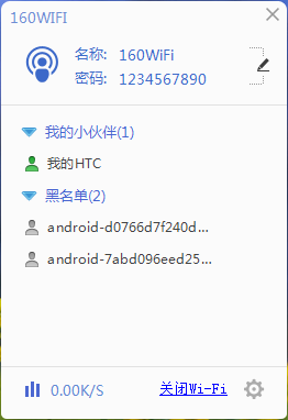 160WiFi 3.0 软件UI全新改变,画面更加简洁,也更加小清新。我的小伙伴要连接我的160WiFi,我就把他拉进“我的小伙伴”列表,如果是陌生ID想要加入我的160WiFi,我就把他拉进黑名单,这样蹭网的小黑手就再也不会伸向我的160WiFi啦~