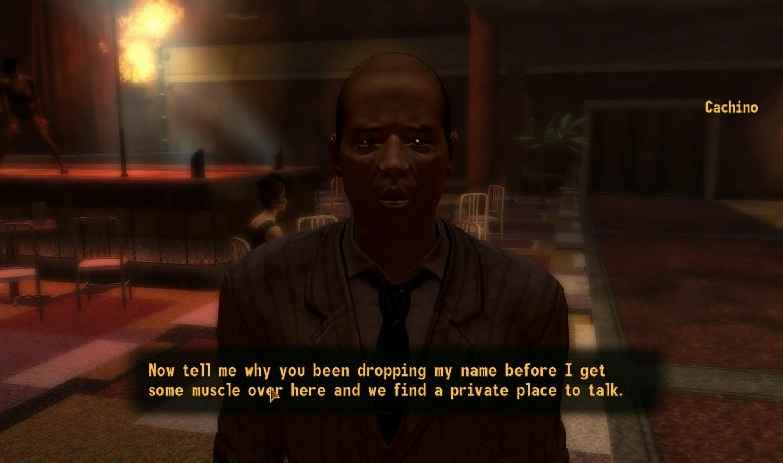 与刚进去门边不远处的接待员对话,然后去找Cachino。