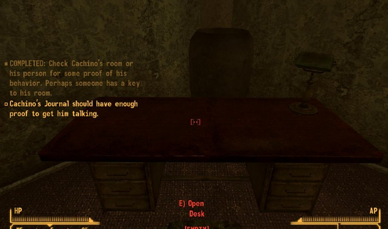 回去门口的招待员索要Cachino房间的钥匙,然后坐电梯去Suites Level 1进入Cachino的房间,在二楼的办公桌的抽屉理获得他的日记然后回去找Cachino。