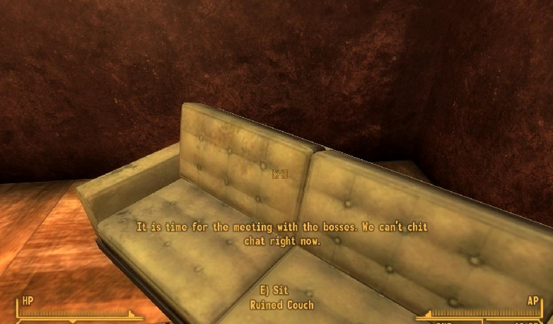 然后去找Cachino,跟着他去见他的BOSS。进入房间后,坐到沙发上。