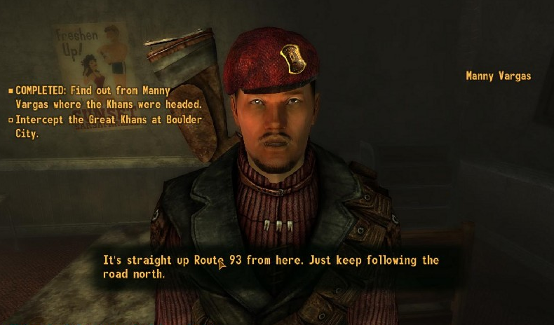 回到Novac向Vargas报告情况,主线任务会的更新。下一步要前往Boulder City找Khans。