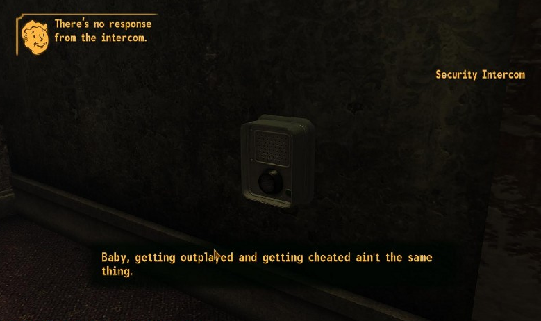 在Benny的房间与机器人Yes Man对话。记得每个选项都要选过。任务Ring-a-Ding-Ding!完成,获得新的任务How Little We Know和3个Wild Card任务。